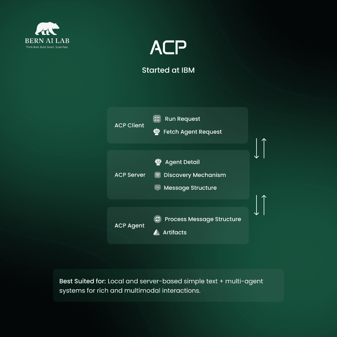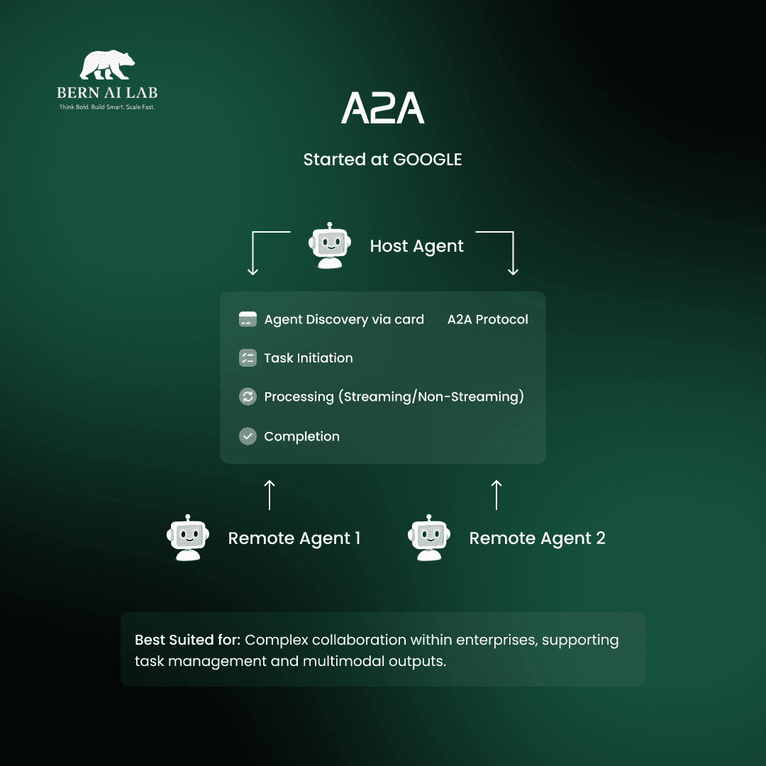 At Bern AI Lab Inc., we specialize in building agentic systems that automate entire workflows - across research, operations, marketing, and decision-making. Understanding the protocols behind those agents is essential for teams designing next-gen autonomous systems.